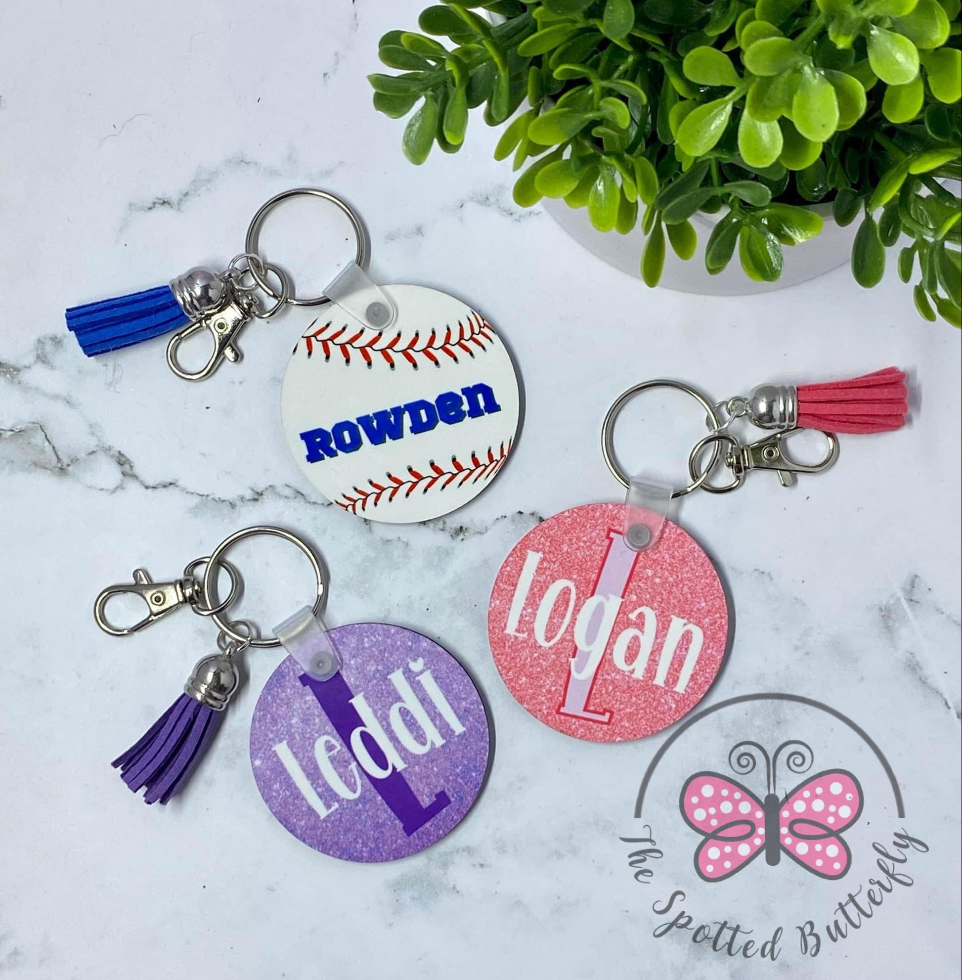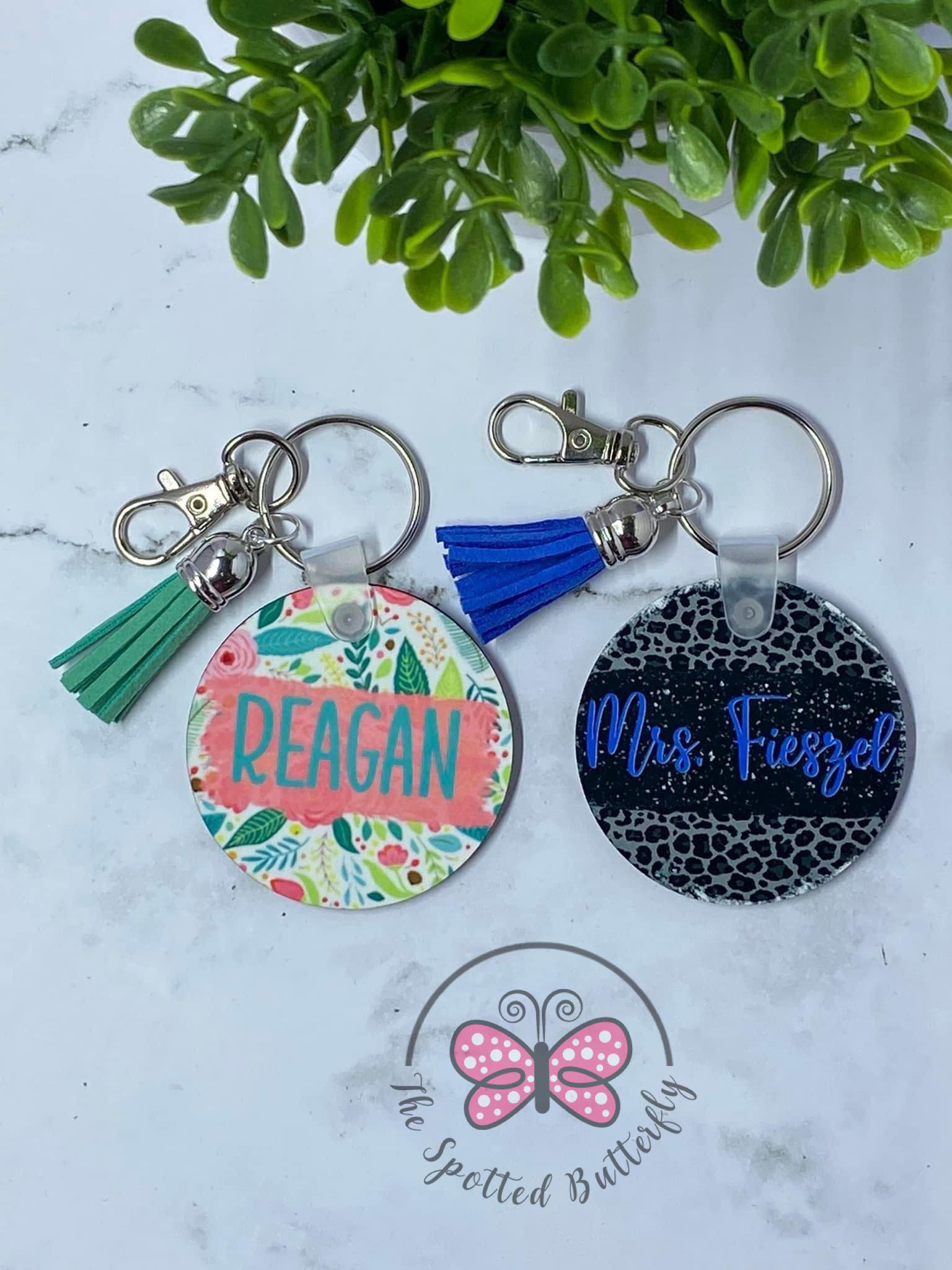 2" Round Keychains that are double sided and 100% customizable! Comes with your choice of design and color of tassel! Tassel colors are pictured! Please let me know which color of tassel you prefer in the notes at checkout or I will select one that matches the design! Also, let me know the design and colors/names you would like.