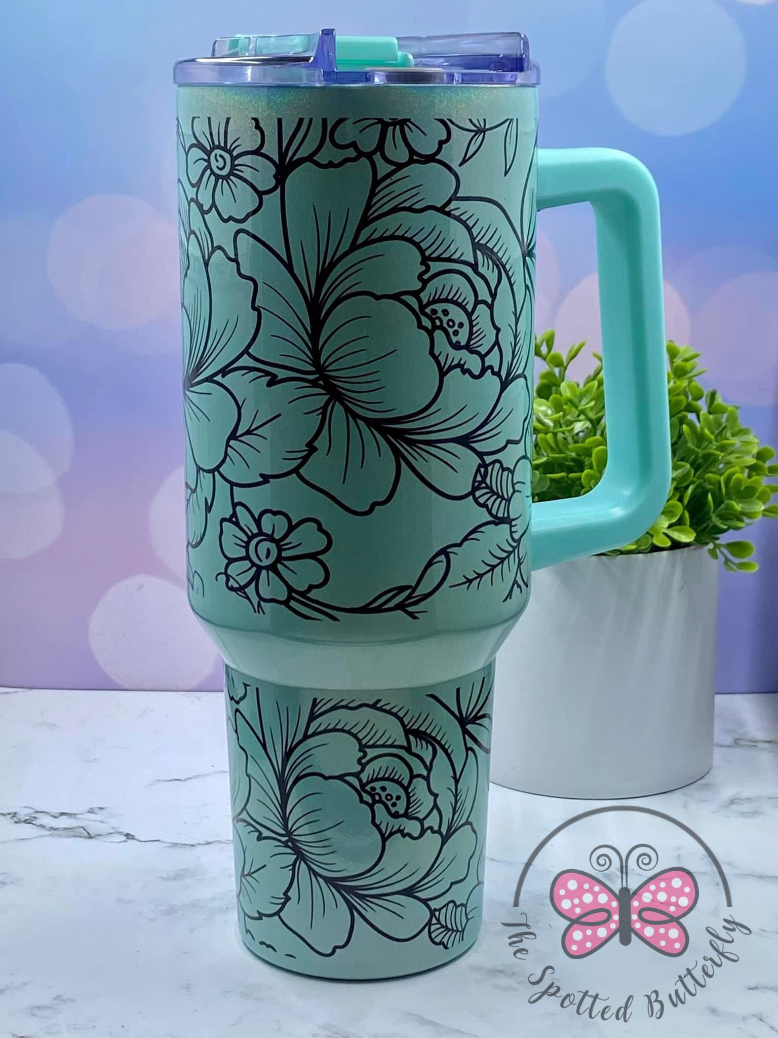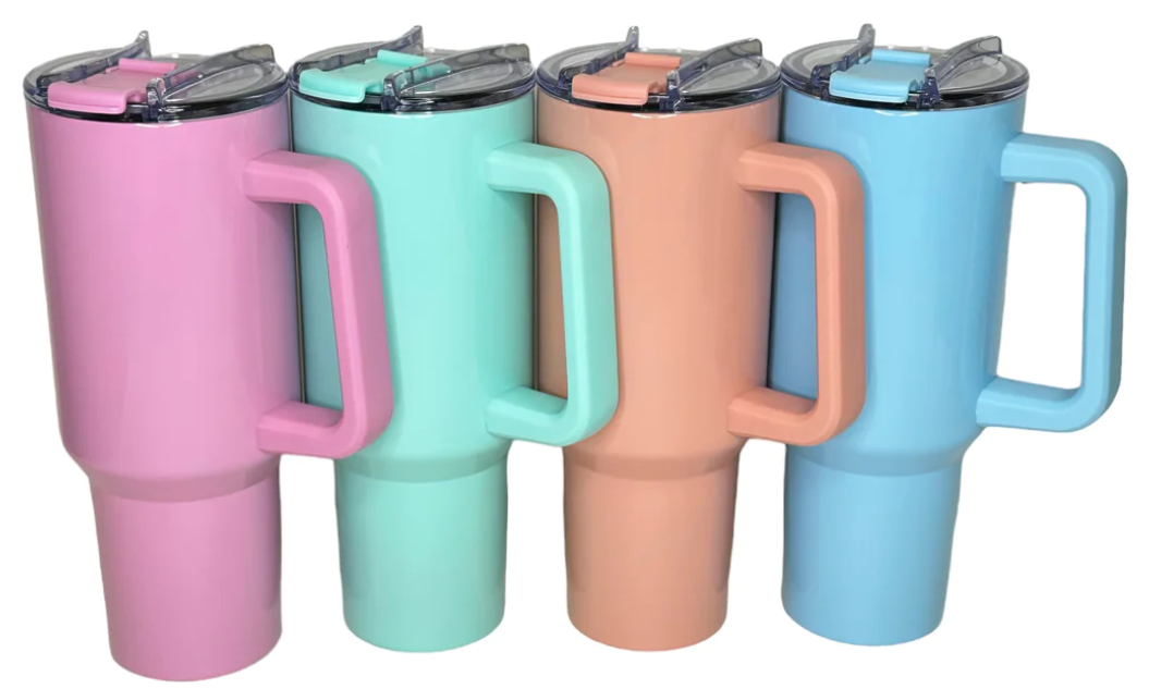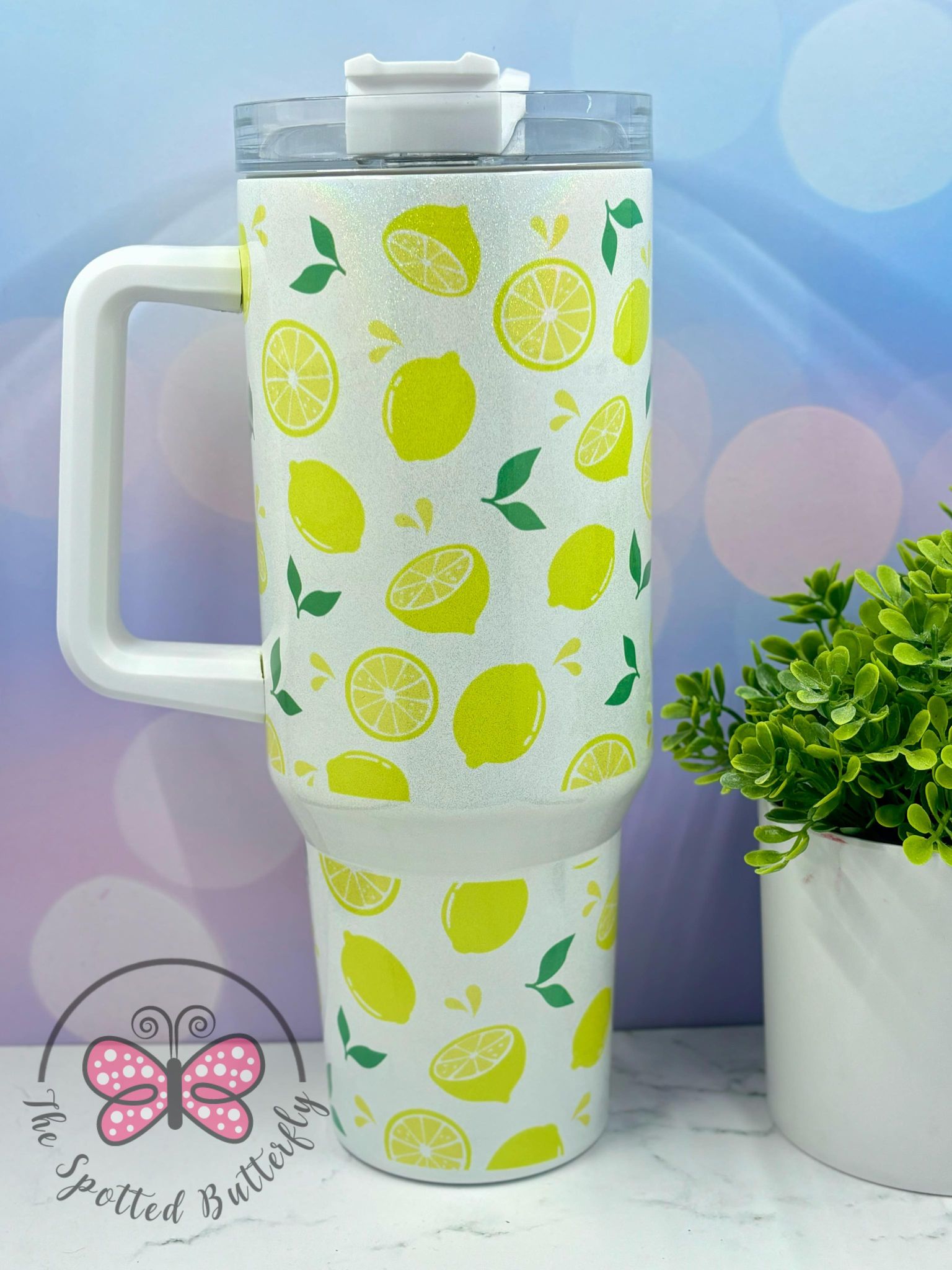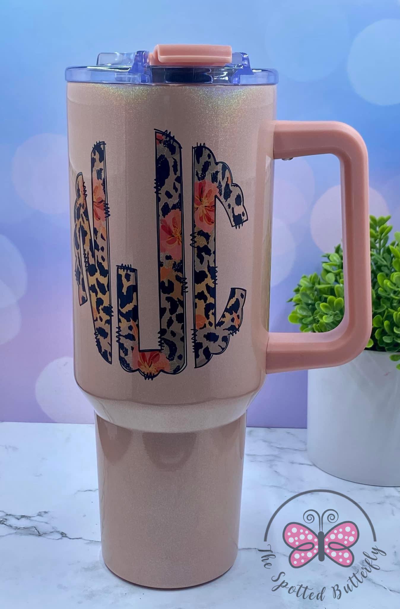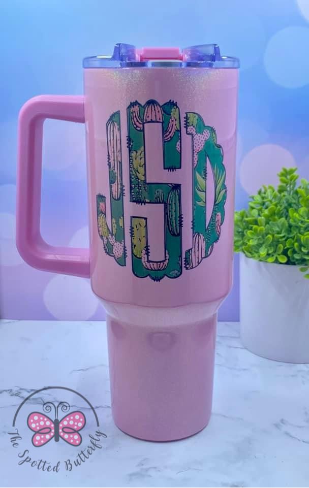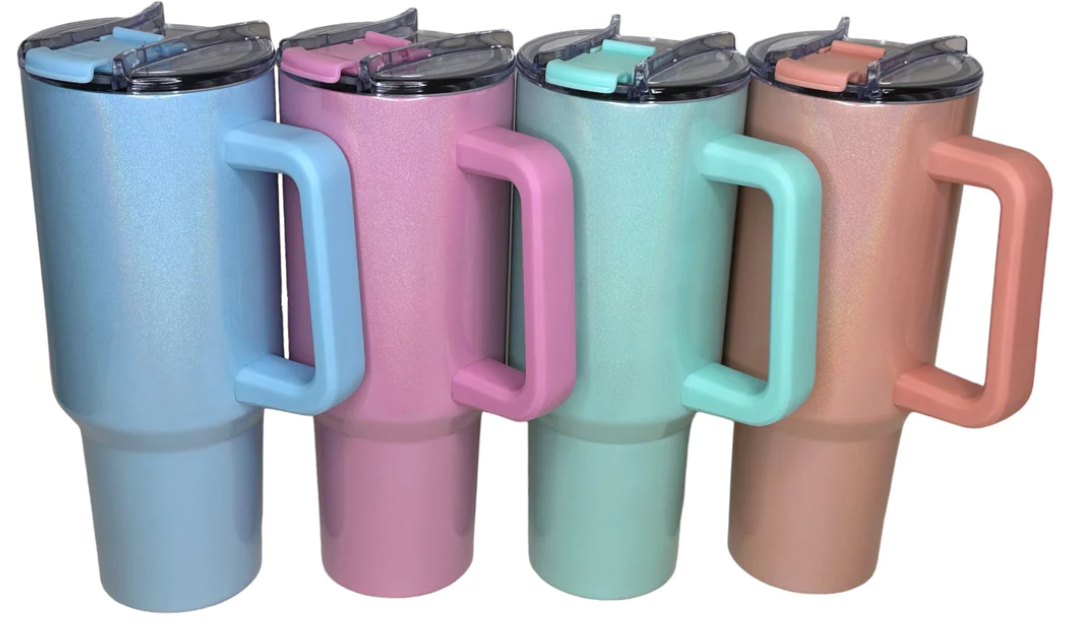 This is the Summer 40 oz with handle! It is available in 4 colors and either in Shimmer or Plain! Comes with a straw.