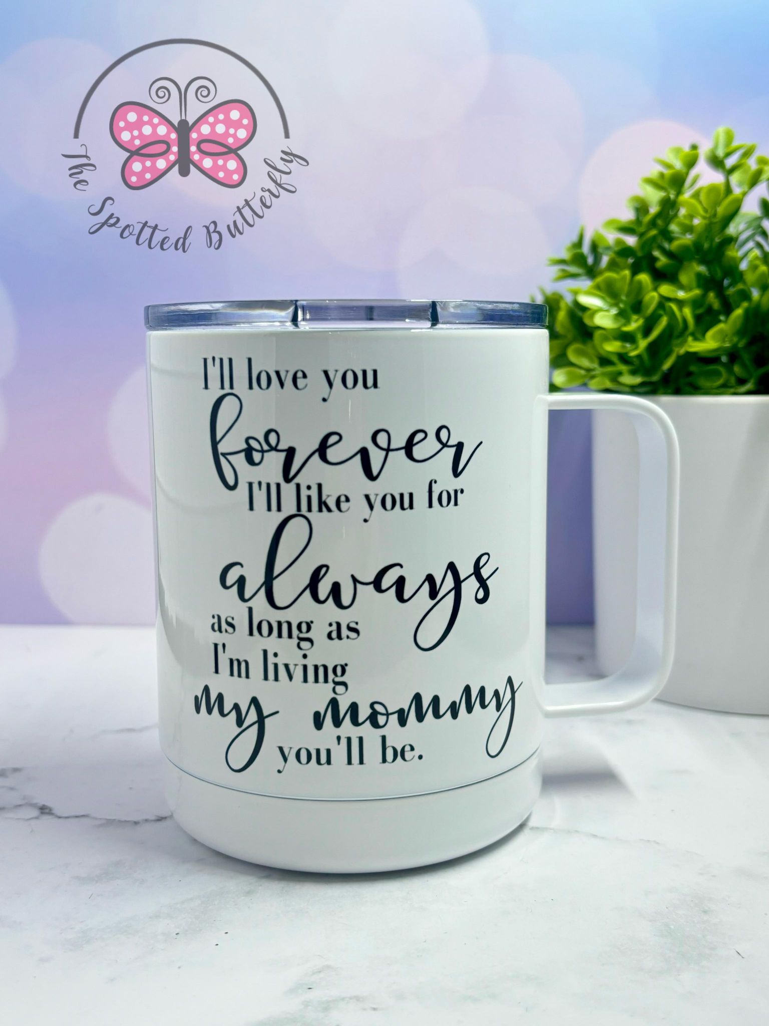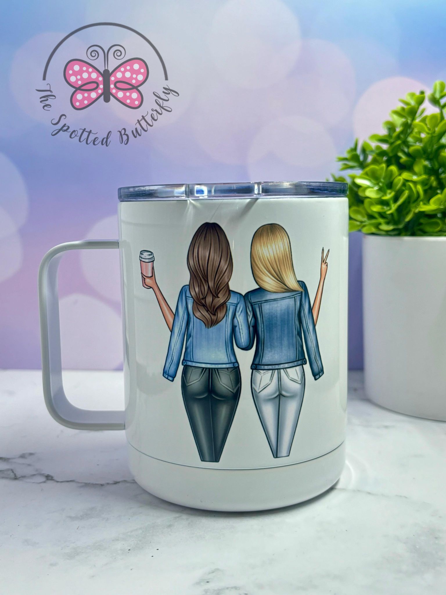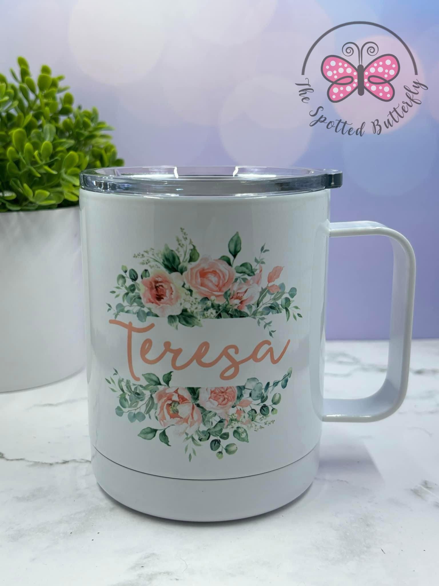 10 Oz Coffee Mug with Lid. These can be completely customized! We also have a 16 oz style!