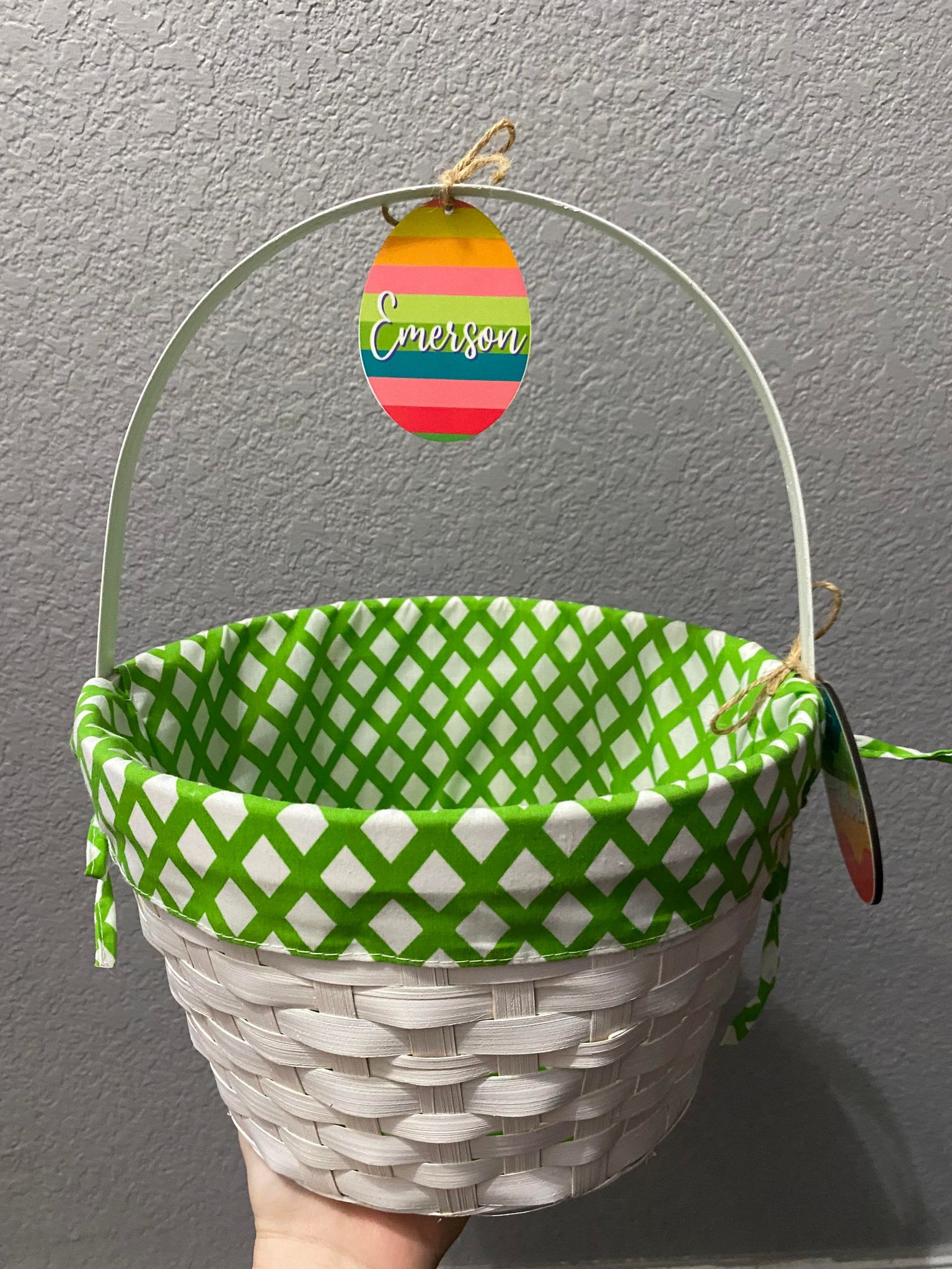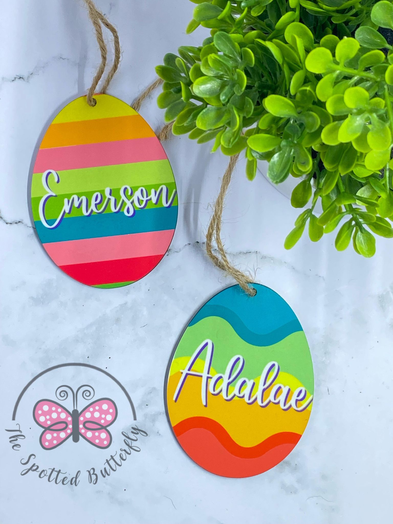 These tags are double sided and 100% customizable! They look so cute on Easter baskets either hanging from the handle in the middle or down at the side!