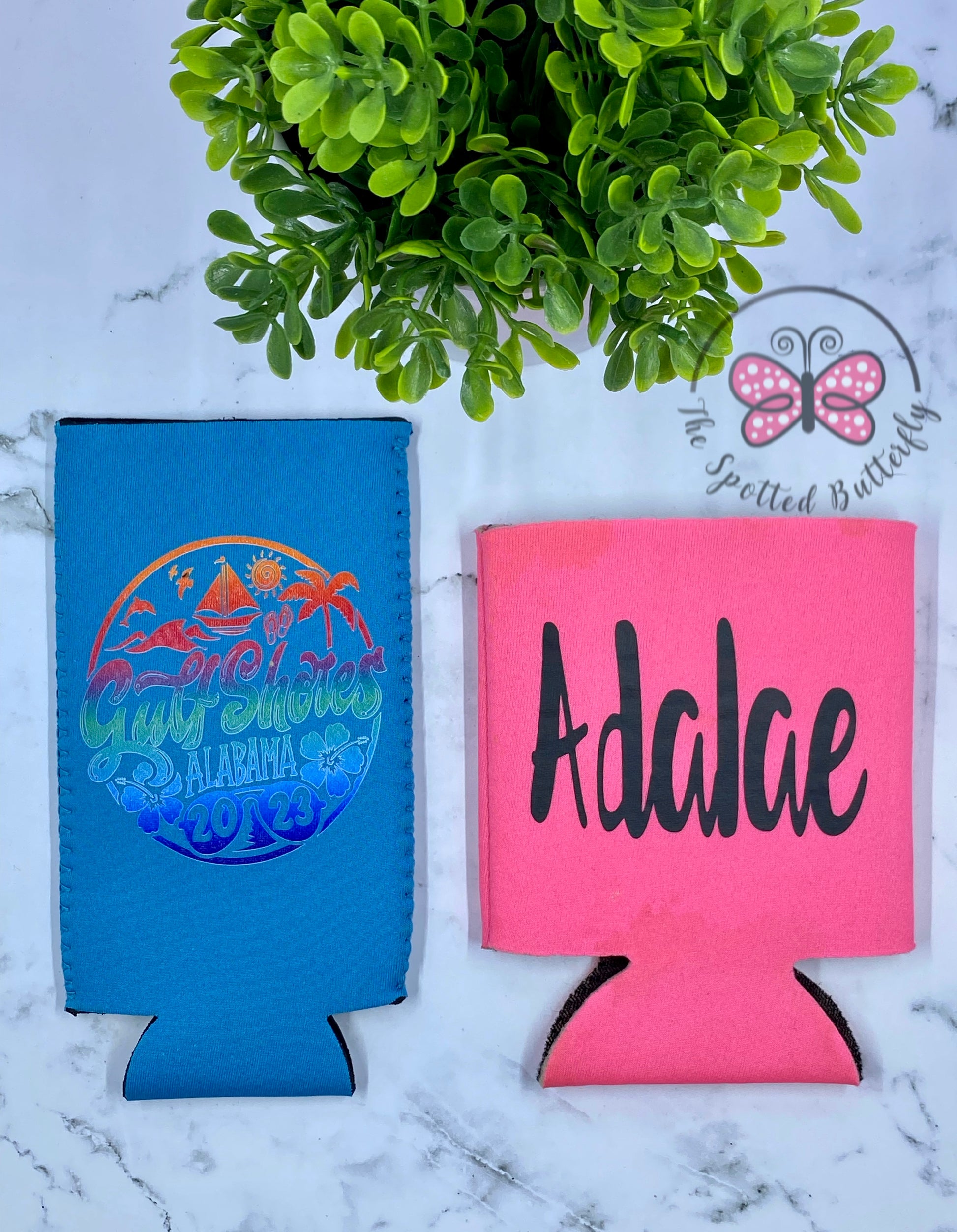 Last picture shows the difference between the skinny can koozie and the regular koozie.