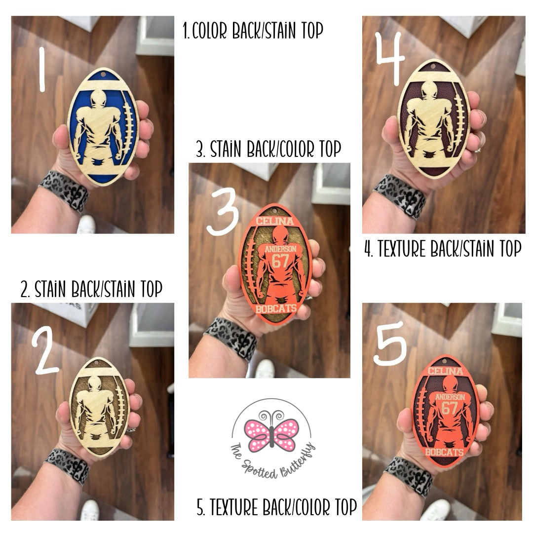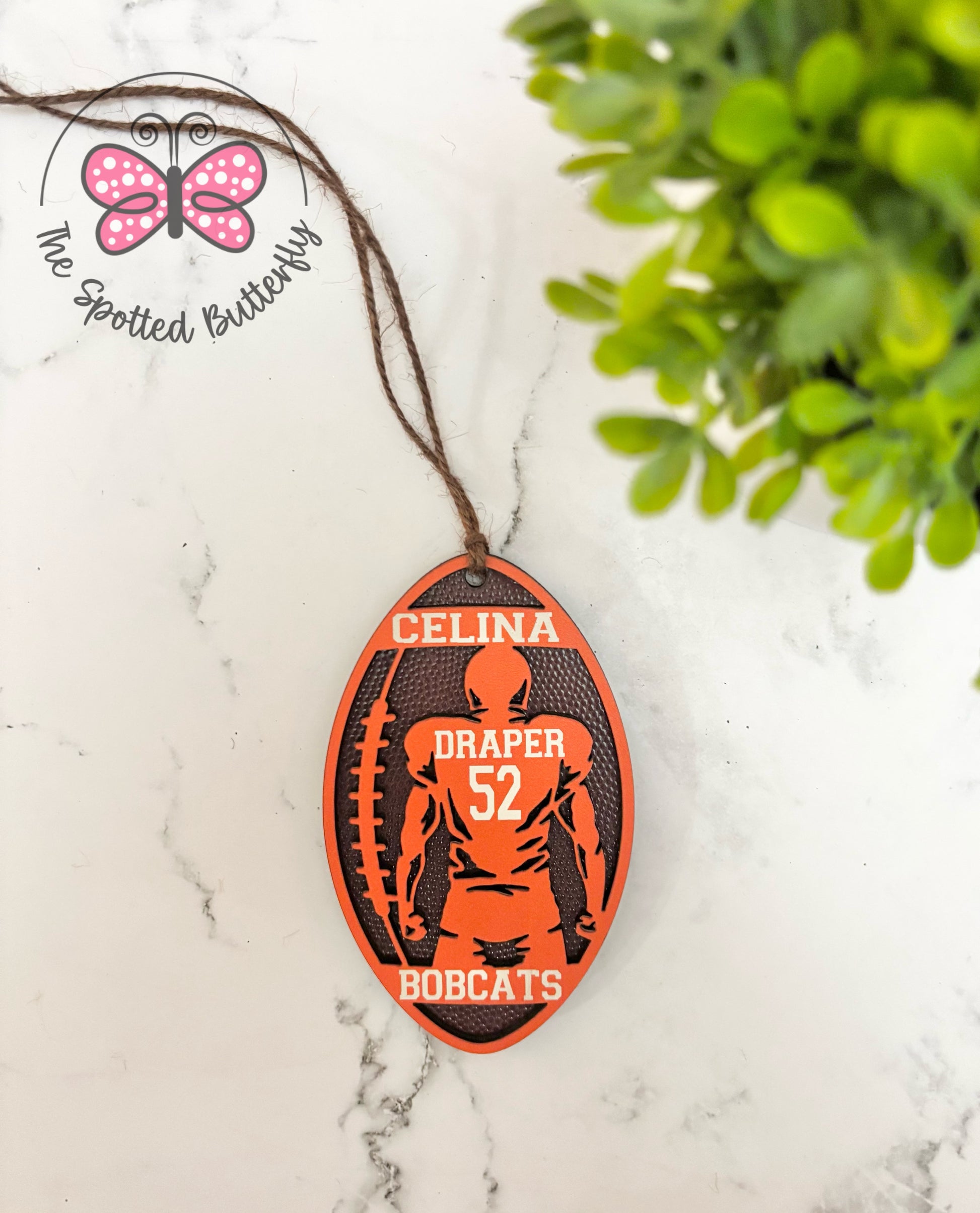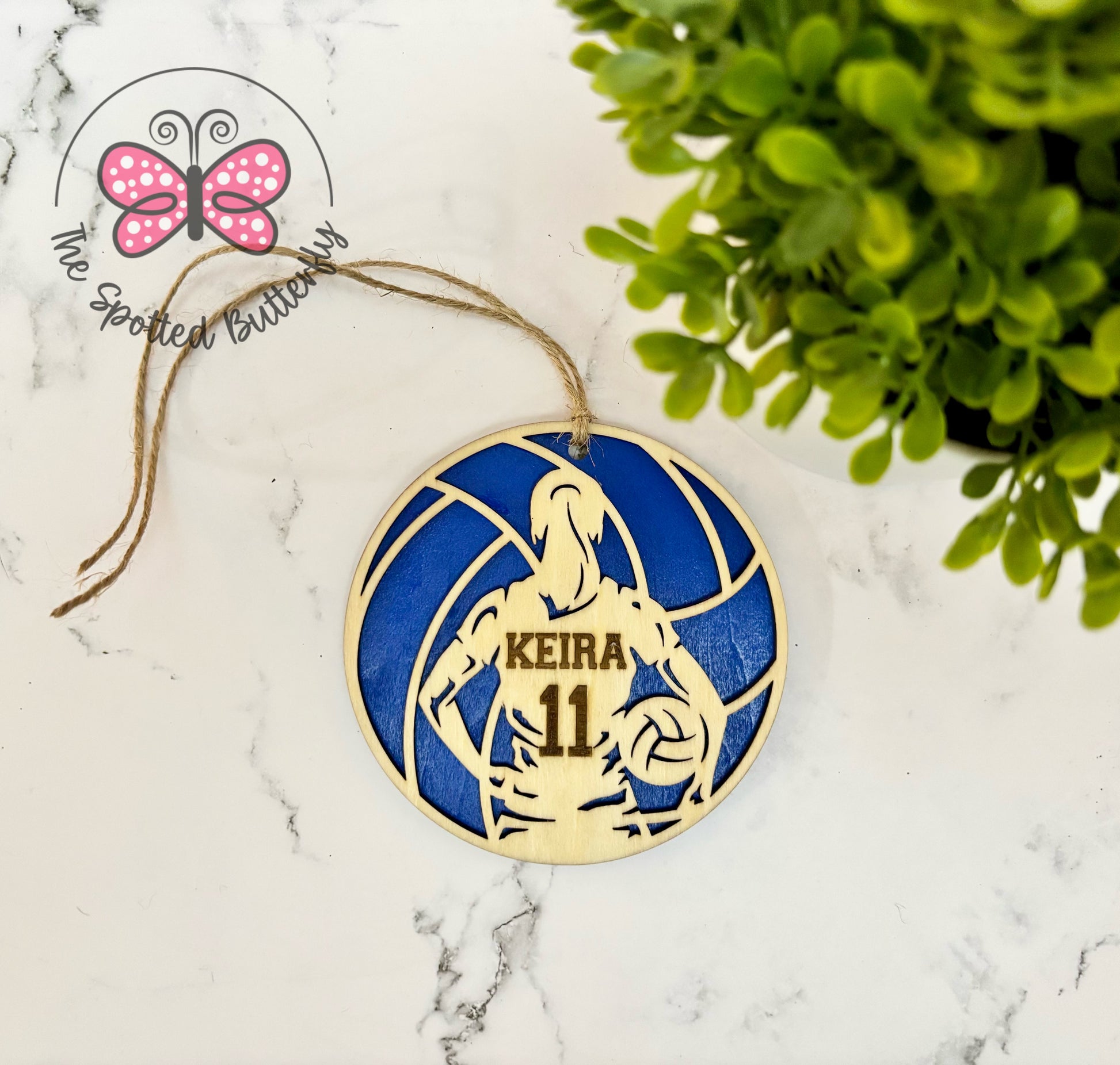 Wooden sport ornaments. Can be personalized. Please put the name and # that you would like in the notes at checkout or start a chat!